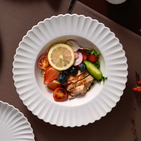 UCCELLO is a contemporary porcelain brand developed by GRHS Trading LLC, designed to complement every dining concept — from elegant hotel rooms and breakfast buffets to vibrant Asian fusion restaurants. Its philosophy is simple: let the chef’s creation shine. Each piece is crafted in pure white, allowing the food itself to become the visual centrepiece. Behind this simplicity lies precision — refined geometry, balanced proportions and flawless glaze, all inspired by timeless Italian aesthetics.