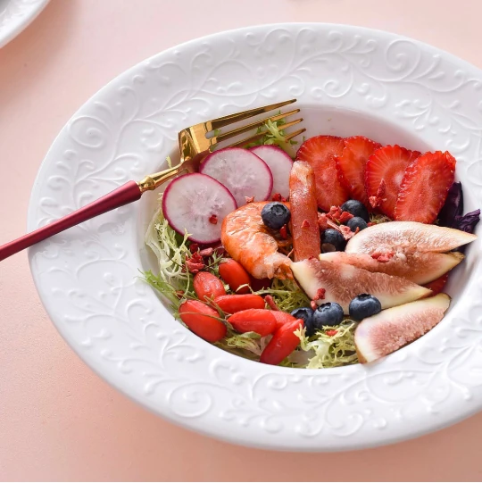 A more restrained take on the Italian classic. Soft inner ornamentation creates quiet charm for everyday fine dining.